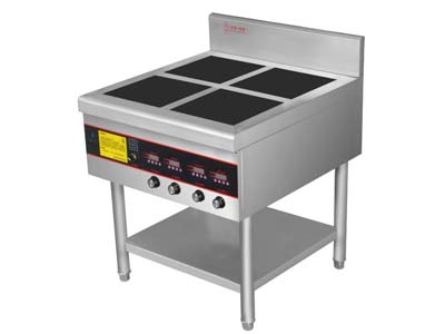 四头电磁煲仔炉 额定功率:3.5KW4 额定电压:380V/50HZ 外形尺寸:750x800x960(800+160) (mm) 主要用途:适用中西餐厅同时烹饪多样化、单例份量少的美食,也可用于快餐店加热牛排铁板 额定功率:3.5KW×4 主要用途:适用中西餐厅同时烹饪多样化、单例份量少的美食电磁四头煲仔炉(无柜)